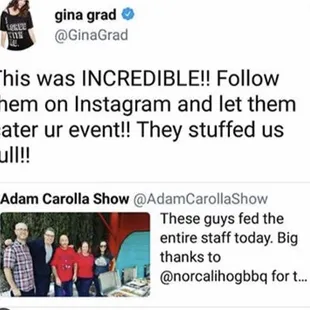 We hired Nor Cali Hog Bbq to cater our wedding in May. They were very professional and a pleasure to work with. Presentation was great and the BBQ was the best. Ryan makes his own " secret " rub that puts his ribs on a different level, delicious!! His wife Liz and staff were also on point. We would definitely reccomend them and will hire them again for our next special occasion. Thanks Nor Cali Hog!