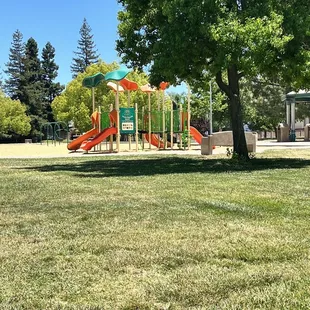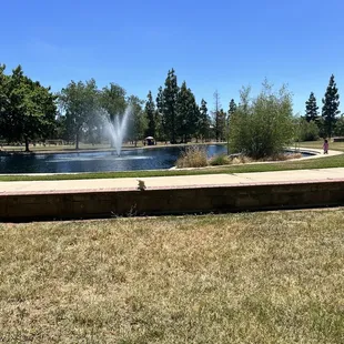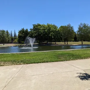 On Saturday late afternoon my boyfriend and I took my daughter here for her friend's Spider-Man themed birthday party. They had 2 amazing playgrounds, 1 for the smaller children and one for a little older, both with swings, slides etc! They also had a beautiful large pond with a nice big fountain the kids enjoyed as it soot out as they ran past it, the got soaked lol! I really enjoyed seeing the geese as well swimming and seeing the beautiful flowers in bloom and beautiful dog statue hidden beneath the grass!I would highly recommend this park, the twin girls had a great party despite the winds blowing things about and my daughter really enjoyed herself and cried when the party ended!