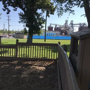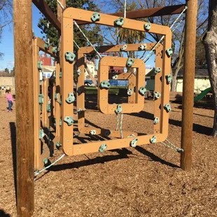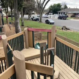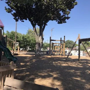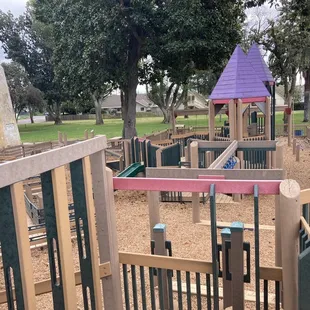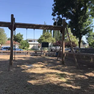 This park has came along way over the last couple years. It used to be ran down, falling apart, and full of transients. The City of Oakdale has really stepped up and reclaimed this park for the children of Oakdale. I am truly impressed with it now. It's a fairly large area with lots to do. It has a wooden play area complete with tunnels, slides, monkey bars, climbing ropes, bells and more. It also has a separate area with different age levels of swings. Bringing your kids here will give you at least an hour of them occupied and having a great time. That innocent I'm a kid type of fun they really deserve but don't get enough of in todays entirely too digital society. There are many different ways for them to occupy their different senses and learn new skills and confidence.