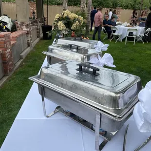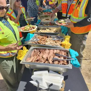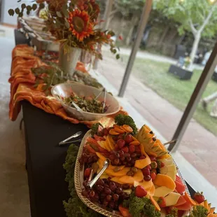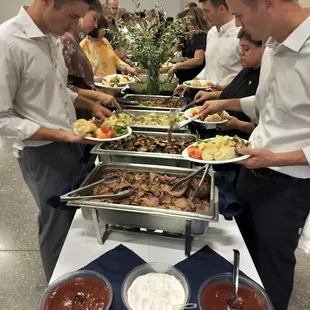 Absolutely delicious food and beautiful charcuterie tables. Plenty of portions and hot food with fresh fruit that was chilled. Everyone working that I see has big smiles and are working hard to keep it organized, clean and food coming out. You can see they take pride in what they do and are hands down the catering company I chose.