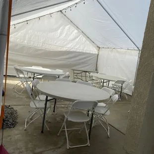 We rented a 20x30 canopy tent, 6 tables, 48 chairs and a patio heater! Needless to say, they have a good amount of inventory lol! I was very particular about the canopy set up - which walls would be up and which would be open. He was very accommodating and made sure I was happy with the way it looked. They came the day before our event which I was so grateful for! We were able to do some of the set up that night and had everything ready the morning of for our other vendors (toddler soft play, balloon back drop and dessert table), not having to worry about coordinating times based on when the canopy was gonna be up and ready. Communication was quick and efficient! So appreciative of Osckar, his family and business! I've already started recommending them to family and friends! Will definitely book with them again for our future events.