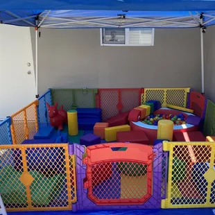The 10x10 Soft Playground Set up In a beautiful backyard in SF . For a. First Birthday party.