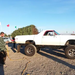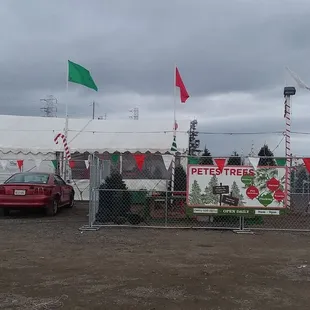 This tree lot has beautiful trees in all sizes 2 ft to 20 ft. And cool flocked trees too. Coffee and popcorn too! Great family tree place!! Guys do all the work trimming, fresh cut ,netted and tied to car. I didn't know that service still existed.