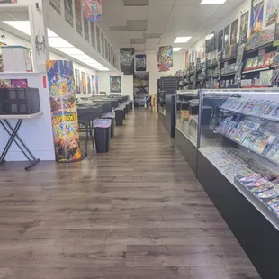 I stumbled by this store on the way to get some boba. I walked in to check it out. There were a few tables to the left of the store, a few groups were playing some games. The atmosphere was pretty quiet though, which I know some people appreciate more than the opposite. I was greeted when I went in and wished well when I left. It's mostly cards in here. I didn't think it was much of a selection. Pokémon, one piece, Star Wars. There were some random Funko pops sprinkled about. Otherwise I didn't think this store was anything special. I'll update if I visit again and actually buy something or use the facilities.
