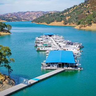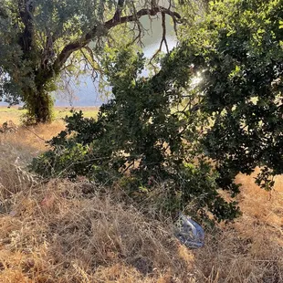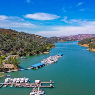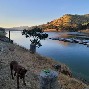 I've been to Lake Berryessa a few times but my first time at Pleasure Cove Marina. First advice: DON'T MISS THE BLUE SIGN off the HWY that says "Pleasure Cove Marina". Doesn't say where to turn, just turn up THAT road next to the sign. (I saw a few cars making a U-turn off the HWY) Call ahead for the gate code. We thought we were gonna be late, so we just so happen to call in advance & they said no problem. There was no check-in process & nobody confirmed our campsite reservation when we drove in. Hassle free for us (I'm not complaining, but I suppose anybody can just come in then). Lot 126 stood on top of a hill & overlooked the entry-road & cove. (I noticed the campground map was a little deceiving with the way our site was located, but it was easy to find). I saw reviews saying the sites are poorly numbered but ours was posted on a marker & spray painted on a fence. Nonetheless, beautiful location, it was better than I expected. I didn't have any neighbors since it was along the edge of a hill. There was your typical porta-potty (shared between lots 123-127) . It was clean when we arrived on Friday but it was already filthy by Friday night. You had your normal share of spiders above your head, but at waist & feet level it was clear of insects. I was at least thankful there was a toilet nearby otherwise it's quite a walk to a real bathroom. Personally, I only saw 2 bathrooms; one near the entry & one near the store. Had sinks, but no mirrors. Decently clean. Toilet paper stocked. H& dryer, no paper towels. No water faucets at the campground site to wash dishes, brush teeth, etc. No electrical outlets that I could find either. We did find a faucet near the entry bathroom & we washed our utensils there. There was trees for shade, but no where to hang a hammock, & the campground consisted of gravel, dirt/dry grass. On arrival, it was fairly clean, just a few old wrappers scattered. Clean for my dogs & I'm happy they're pro-pets. Camp fires were not permitted. It was Saturday & I couldn't rent a boat because it was last minute & if you don't have some sort of water craft then you can't really see out to the main lake. I was really set on taking the kids for a swim but there's NO BEACH. I looked through multiple reviews to see where people were hanging out on hot days but there was no real information I could find, so I'll tell you my experience. We drove past the marina & docks, up to where the cabins are & theres no place to get in the water other than between lot 137 - 157. You can find 2-3 spots between the trees to slipperly walk down to the water. There you can launch a floaties. The edge of the water was squishy but I suggest water shoes to protect your feet so you can at least linger in the water to escape the heat while dodging all the muck floating by you. There was only enough space for my family to sit on the ground along the water. There was nooooo way to set up chairs because it's on incline that doesn't level out. It was extremely hot, so we were desperate for a spot to cool off at. HOWEVER, there WAS a small little section along the water where I saw enough space for someone to set up a canopy, chairs, park up several paddle boards, & for several people to hang out at. This I would say is the best spot to relax, but I felt uncomfortable because you literally have to cut through someone's campsite to access it (I think lot 136 & 137). They do have security patrolling at night. He drives his car with strobing lights so that reassuring. The noise really cut down around 9pm but not completely. You still have some fellow neighbors playing music quietly, singing, & laughing. It went till about 3am, but I didn't mind because I know people are having a good time. It wasn't at a disrespectful level & I did see patrol making pit stops to those campsites. The marina store was cute, but it wasn't big at all. They carried a h&ful of spare camping items, souvenirs, & snacks. The employees go out of their way to see that you find everything you need & take the time to chit chat for a bit. Honestly, I feel that they should exp& their store with more items... they would make a lot if they carried just a few more stuff. That's just my opinion. Nonetheless, they offer FREE COFFEE! In conclusion, as a person without a boat, jet ski, or water craft, I would like to suggest creating a better place for people to hang out & swim along the water. I overheard a woman, perhaps a "regular", who said she wanted to take a shovel & carve out some stairs along the steep dirt path that led to the water. (I thought it was funny but so true) Wouldn't it be easy to just groom a path, exp&, & advertise a section for swimming? I'm sure there are rules that I don't know about but as a mother looking for summer fun for the kids, this is something that would be a real selling point. People are gonna find a way to get into the water so why not groom the edges better?