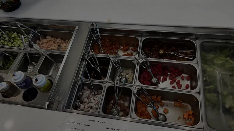 Poke bowl being made from the fresh ingredient bar.