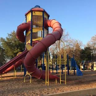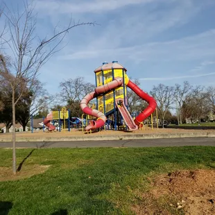Awesome playground. Huge slides and a bunch of climbing obstacles. Would be great if it had bathrooms though