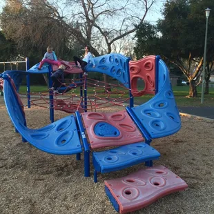 This park is a true gem! We decided to stop by after a Church event nearby and my daughter had an absolute blast, they have a HUMONGOUS slide on their larger playground, my fiancé and I had take a test run ourselves he he and yes I bonked my head! They have separate fun climbing areas and a small playground as well! Only subtracting a star, because they had no restrooms.I would recommend this park and we're looking forward to returning!