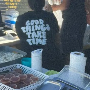 I stumbled upon them at the local farmers market, here in Modesto. It looked intriguing, so I gave it a shot. The jalapeno and queso jumped out at me immediately, so I went with that. I also ordered the polo and queso. Both were delicious. If I had to choose one, I would go with the jalapeno. That being said, I found the perfect bite to be a little of both :) Like the cashier's shirt says, "Good Things Take Time", they do here. Don't be in a rush, but I can assure you it's worth the wait. They hand make it on the spot, so it does take time.
