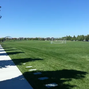 The park isn't too big, too many activities go on at one time, there is often no were to park, and life must be tough at times for the immediate neighbors residing across the street. BUT I love open spaces and love mountain house for this park and all the others in town. The landscaping is nice and the human made hills or mounds are a nice touch. There is a soccer field, basketball court, baseball diamond, playground, and even bocce ball. The place is well maintained and clean. It is adjacent to the Questa school giving a feel of added space.