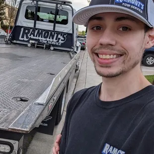 Robert showed up in about 25 minutes after requesting the tow. My fan belt had fallen off and I needed my van towed to the dealership. He was careful with not damaging the bumper when loading it on the vehicle, since it's low to the ground. Good job Ramont's