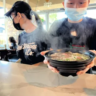 Great service and great food. Very nice people. We had ordered one of the rice plate, and 2 pho bowls. Great tasting broth.