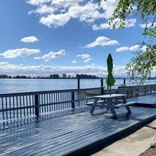 Painted deck new tables and umbrellas