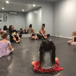 My daughters first class was an amazing experience for her. She is 3 yrs old. I was able to sit in the back of the class with her until she felt at ease and then marched right to the front of the class and had an instant connection with Miss Lisa. I waited a few moments let her know I would be right out side the window to watch her. She was totally fine with it and I loved as a parent that I could stay and watch her the entire time. I'm 100% a helicopter mom! So this was a perfect set up for me! You could also sit in another section and watch them dance on a tv screen. If your child is more the hey mom look at me! Instead of paying attention to the teacher.