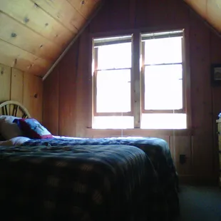 Cabin #8, 3 bd. 1 ba. roughly 900-1200 sq. ft. Smack dab in the middle of the property, very quiet, quite rustic but extremely charming and unpretentious. Views of the river (roughly 1000' from our cabin) via the front deck and kitchen. The cabin was equipped with a full kitchen, small entertainment center (TV - cable, VHS/DVD player but no stereo for music). Bedrooms are moderate in size, only one closet (downstairs bedroom, which is where we stayed). The double bed was firm but comfortable. Master bedroom upstairs has a king size bed (slightly lumpy mattress), large dresser and a TV and the 3rd bedroom has 2 twin beds and a small dresser. Rates off-season are $140 night (which is pretty good) but this was one of the less expensive, smaller units on the 9 cabin unit property. Rental manager is apparently very sweet (per the owners of cabin 5 - who've owned since 1966, hello!) except she seemed a bit short and unfriendly on the telephone. In person, she seems quiet and almost (a l m o s t) rude. This certainly didn't disrupt our vacation as it was (honestly) one of the best trips ever! Highly recommend just disregard the property managers tone when you call/arrive. =)