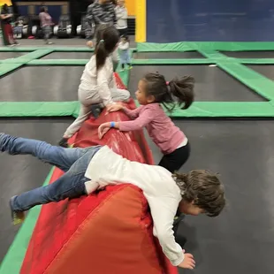 We were invited to a birthday party on a Monday. Our first time here. A few birthday parties were scheduled that night. Since, it was a Monday, it was not busy at all. Plenty of parking. Many lockers were available to store your personal belongings. Plenty of space for the kids to jump/run around. I did not have to worry about the kids running into other kids or land on another kid. Computers when you enter to sign a waiver for your children. Pretty easy. This location has a variety of rock climbing, jump areas, under 6 jump area, dodge ball, and an area that had green (looks like long curtains) swing area. Unsure, what that was called. The party area is located in the back. It was pretty clean and spacious. The attendants were respectful, professional, and courteous. It's nice to see that they were actually working and not just hanging out and gossiping.