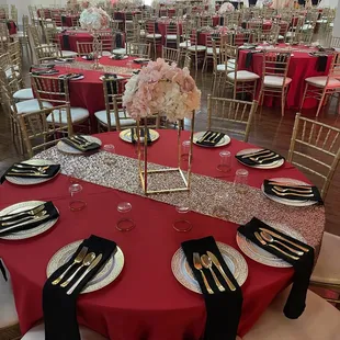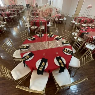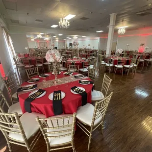 I was here for my company's holiday party. I was a bit skeptical about this place since it was located in/around an unsafe neighborhood. And all the crazies happen at night, which was when the party was being held. The building was spacious and decent for its size. You can definitely throw a wedding here and still have enough space for the dance floor. Staffs were nice and attentive with cleaning the tables. Bartenders were generous with the amount of liquor they put in the mix drinks. They knew what they were doing and will try their best to make whatever drink you want. Bathrooms were clean. Lots of outside Parking but it is a shared plaza. Negative:Many chair/table covers were already stained before people started to show up.