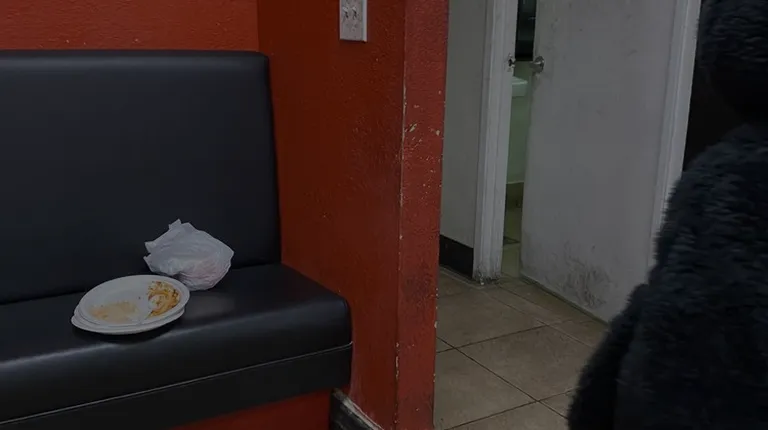 a dirty bathroom door