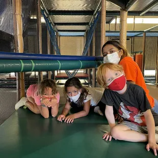 Came here on a hot day to heat the heat and so glad we came! Genessa was kind and explained the process - we signed waivers at the front, shoes aren't to be worn on the play structure (socks needed), and kids are to wash their hands before play. The space has quite a few seating areas for parents to lounge while kids play. There are chairs and tables outside the play area for snack time. They even have snacks, drinks and toys available for purchase near the front. We appreciated the notices on the table that share they are a peanut free facility to accommodate those with allergies. Overall we had a great experience here and would be back again.