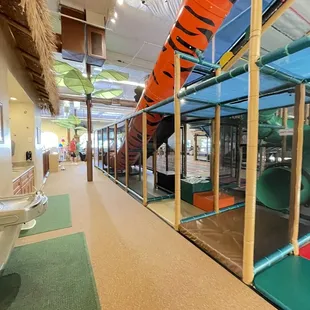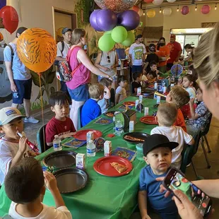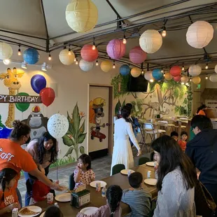 We had my niece's 3rd birthday here and it was A BLAST. I have to add that my niece has never had a birthday party before because Covid killed that for her last 2 birthdays... so this was a really big deal. She's obsessed with Lion King so the safari theme was perfect.When you book, you reserve a private space for your party goers; you get the entire play area for your guests. They had everything set up so nicely: present cart, welcome sign... staff to monitor within the jungle gym area. Everything was spotless and clean. Not only were the kids having fun but the adults were just loving it! There's also comfortable seating within the area for family to sit, socialize and observe. There's soft music playing in the background (not overbearing like in most kid's gyms). The structure is safe, soft, netted and not massive so you can easily spot the kiddos. This place seems better suited for kids 8 and younger, IMO. Everyone must wear socks to play, just fyi. My brother and I were making bets about how many kids were going to have a meltdown after the play time was over but it never happened. Here is why: After the play time is up, staff makes a beautiful transition from play time to sitting on a mat, group picture, to hand washing, to party room (for food and cake). It is seriously a well-oiled machine. THEY WERE ON IT!! The staff was so nice, organized; they got all the kids seated, and before you know it, they all had pizza in front of them (my family brought in the pizza). NO JOKE; not a PEEP from these kids! They were kept busy the entire time. Staff set up the salad, fruit, drinks and cake beautifully... beyond organized! I worked in the restaurant industry for many years and my jaw was dropped watching the staff seamlessly keep a group of 50 people (including 20 hungry hyper kids) in order. The ambiance inside is so colorful and fun with murals, paintings, paper lanterns. There are several high tops for the adults and a long table for the kids so they are centralized. There is a long counter with plenty of room for food and the staff does all of the initial serving. As soon as the eating and cake is over, you then transition to another room for last pics and goodbyes, handing out gift bags (my sister made hers). I can't emphasize enough how flawless it was. I've never been to a more fun and organized kids party in my life.More important than anything, my niece was the happiest little girl I have ever seen that day. She had so much fun with her friends and family. Absolutely priceless memories. If you're on the fence about having a party here... absolutely do it!