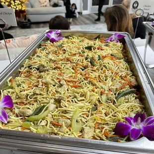 We hired Larry/Sons of Guam to cater our mother's 98th Birthday Luau and he was wonderful to work with, super accommodating of our menu and budget. He arrived right on time, did a great job setting up our buffet and even brought extra edible orchids to make our tables and plates even more festive and authentic. It was a lunch buffet and we had the Huli Huli Chicken/Fried Rice/Grilled Vegetables/Hawaiian Rolls. All of the food was FANTASTIC, the portions exceeded our expectations and every guest and family member raved about it!! I would not hesitate to recommend them to anyone reading this review and hope to have another opportunity to hire him again. Thank you Larry and team for making our mom's 98th birthday luau buffet seamless and special!