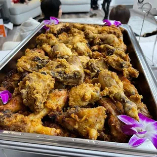 Bbq short ribs, lumpia, red rice, empanadas, lechon, chicken keleguen, bbq