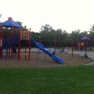 Great park! 2 playgrounds both great for toddlers.. cute little trail to ride a bike.. some shade.. there's a couple of benches and tables, and a basketball court. Only down fall is no restrooms :( no bueno when you have a toddler or a baby you can't change. Other than that this park is pretty awesome.