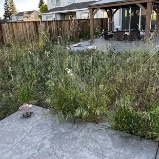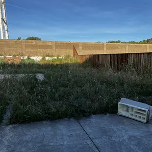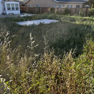 a patch of overgrown grass in a backyard