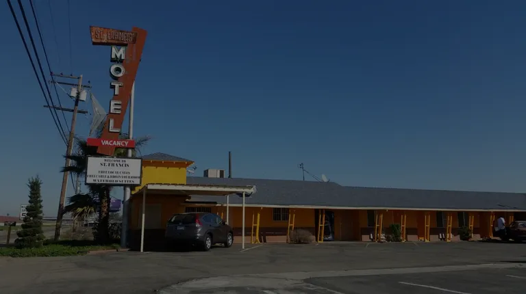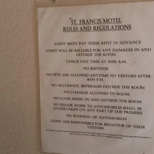 This is the st Francis motel let me say the rooms are in need of a lot of repairs and painted badly the doors lock.push on the door it opens