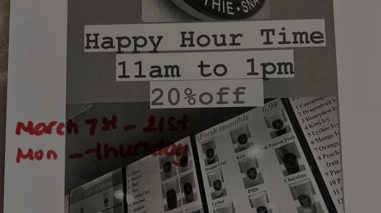 Happy hour 11am -1pm Monday- Thursday