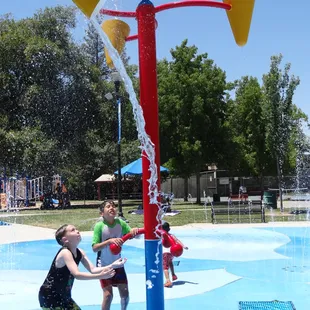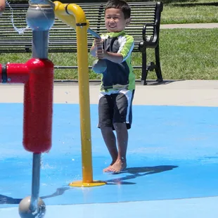 Great park with an awesome splash pad! There was a variety of water cannons and sprayers so kids didn't seem to have to wait long to play with anything.