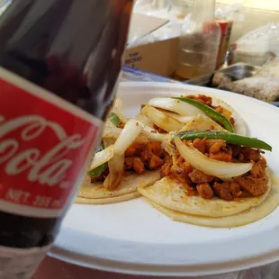 three tacos on a paper plate