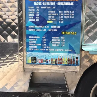 a menu on a food truck