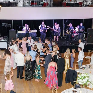 Everyone dancing! We used the center of the room as the dance floor with 6 tables on each side of the room.