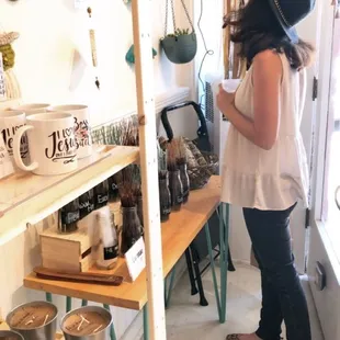 I absolutely love this boutique. You would never guess behind that pink door is the smell of creativity. So many local items to choose from. Candles, oils, soaps, mugs, jewelry and so much more. Every item is unique and local. They even hold classes!