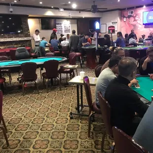 The Palace is a cool place to play cards, if you are used to casinos. This card room does not cater to the casual player, it's more for hard core gamblers. Pretty no nonsense, the room has several poker tables, as well blackjack and pai gow tiles. If you want to tip your toe in the gambling world, there is a 9:00 AM daily poker tournament. Even if you don't show up on time, they will seat you until 10:00 AM. Most days, the entry fee is only $40.00, with a $20.00 add-on. It's a pretty inexpensive way to try your hand at poker. The dealers are pretty friendly, and the floor staff is also very courteous. And the cafe makes a mean breakfast, which is good if you make the tourney.They don't have their own parking lot, but there is a garage 2 blocks north on Mission and B. There is even a shuttle to take you from the garage to the casino.If you are used to the glitz and glamour of the Las Vegas Strip, then don't bother coming here. The Palace is all about the cards and not much else... perfect for the hustler in all of us.