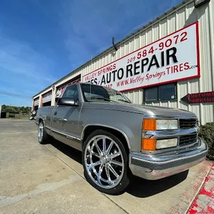 Awesome service and fantastic work. Bought a set of tites from 4wheelparts and had an alignment done it drove terrible. After 500 miles my new tires were getting damaged by the terrible alignment 4wheelparts did. I took it back to them they readjusted my alignment and it still drove horrible. Said my sprongs settled. My sprinhs had 60k miles on them. Settling would happen thousands of miles ago. So i knrw that was a lie. Then tgey said its adjusted tge best it can be. Well had yo get a second opinion took it to valley springs tire and wow! Tge truck is driving great now. Mike the mechanic did a perfect job. Explained things and showed me where the alignment was out of adjustment and then went to work. His attention to detail was fantastic. So if uour thinking about going to 4wheelparts save yourself the hradaches and a bad job, cone to valley springs. Even if its out of the way it's worth the travel to get your truck dialed in properly. Thanks again Mike for a great job on knowing how to align a lifted truck.