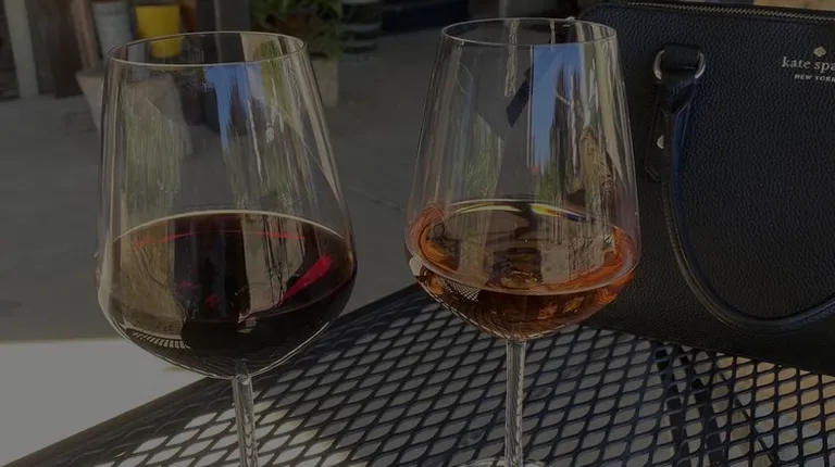 two glasses of wine on a picnic table