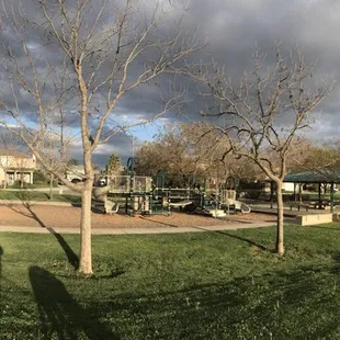 Nice larger size park. Included basketball hoops, playgrounds, tables, grassy areas. No restrooms are on site. The grounds are well maintained and it's a nice park to spend time at.
