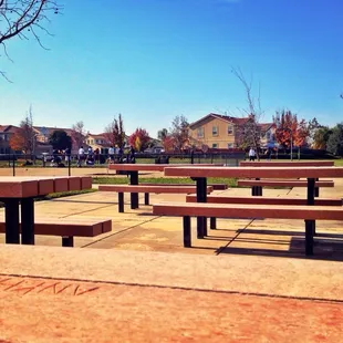 This review is mainly for the playground/picnic area.There is a lot of graffiti throughout the picnic tables and they are poorly maintained. The playground area is filthy and looks as if someone spilled candy/ice cream throughout the entire playground. Then there is the horse shoe toss area that is in serious need of extra sand.The park just a few blocks from here is in much better shape and better maintained. Not to mention bigger.