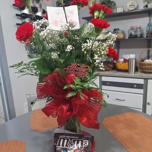 I've received flower arrangements from Village Flowers on several occasions, and I have to say that I've never been disappointed. On the contrary...always BEAUTIFUL! This valentines arrangement is exactly what was requested....not to mention the pack of M&Ms!Thank you...I love it once again!!