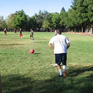 As far as I can tell this park is primarily best used for drinking.. Other than that there aren't a ton of redeeming qualities about this space. It's mostly just open (and yellowing) grass, with just a couple picnic tables under a few trees. They do have tennis, roller skating, etc courts, but they're pretty cracked and worn down. The baseball / kickball field only has a backstop, so actually playing the game is a do-it-yourself affair. The park is also pretty modest in size. Still, since the alcohol container ordinance apparently doesn't apply here and the park is pretty isolated, if you want to get drunk outside with your friends this is the prime place to do it! Thankfully, drunk people aren't usually too worried about the quality of a park.