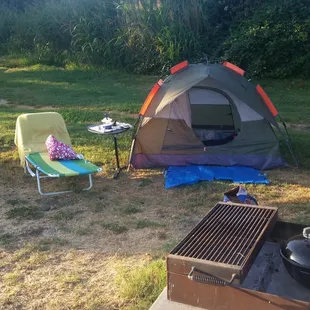 Looking for a weekend getaway and I'm pretty sure I found it. If you need to be entertained while camping, this place is NOT for you. If you have kids, that needs to be entertained while camping, this place is NOT for you. If you need hook-ups to survive, this place is NOT for you. What this place offers, is quietness and fresh air. There are restrooms, but no showers. The fire-pits are on concrete and pretty much level. Each picnic table is lever and on a concrete pad. All campsites are pull-thrus. There are NO hook ups of any kind. There are several water spigots. There are trash cans at every campsite. The camp host would walk the grounds in the morning and in the evening. Very friendly, but not nosey. We will be going back again and again and.....