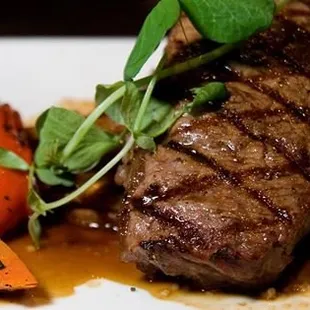 Grilled tri-tip with garlic au jus, mashed potatoes with truffle oil and chives, and haricot verts (Photography by Helena and Laurent)