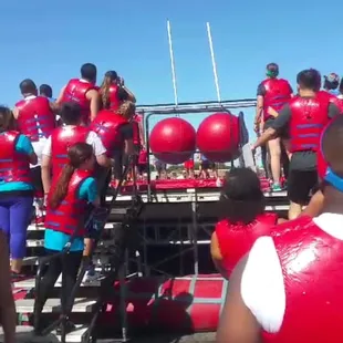 This could have easily been 5 stars but a number of things ruined it for me.1. Trying too hard to hock overprice wipeout gear/wares. No I do not need a tutu. No, I don't think 4 more arm bands will help me complete the course better. A definite buzz kill for me.2. Better training of event staff. During the obstacle where two tethered balls try to knock you down into the water, two people fell into the water and where having some trouble getting. The even person told me to go, and I said I was waiting. He then just go. I told him it's not safe. He told me people are waiting and I need to go. I told him look there's still two people in the water (one of them a friend of mine), and it's not safe. He kept trying to pressure me to go, but I just ignored the college kid, until I saw the two were climbing out of the water.3. The water in the water events is just plain nasty. Imagine this. Hundreds maybe thousands of sweaty people "shower" in the same. Even worse all their dirty shoes go through the water and you're expect to be drenched going through the obstacle. I understand we're in a drought, but I can't imagine all the bacteria collecting this that dark slimy water. Maybe figure out a filtration system next year, or at least throw in a ton of chlorine.4. The pins and bibs are a bad idea. There is not reason for them. They do not track time, and your number for the event is meaningless. They do become a hazard. The pins come off, and I was stabbed in the hand by one that was in the water on the foamy slide obstacle. I even have this on video of me pulling it out. Good thing it wasn't too deep, but with all the bacteria in the water, infection was definite concern. Even my brother's pins came off a couple times after he fell, but good thing he didn't get poked like me.Overall, I had fun, but there definitely needs to some changes for me to come back next year.