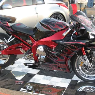 Yes Frank, I do want glitter, rhinestones and rainbows on my motorcycle. Alright, maybe I'm the only person in the world who wants that on their dream bike but if you want monogram Louis Vuitton seats, gold flecked paint or one of the sickest, fastest bikes on the road check out Frank at Xtreme Cyclez.If you can dream it, Frank can create it. His knowledge and love of bikes truly comes out in his work. Fine ass biker, chicks, hard core biker dudes and anyone who just loves fast bikes should hit him up. Don't come to him talking that Harley crap, either. That's just not his thang!If you aren't ready to slip something fast and hot between your thighs, visit his web site for a complete listing of shows and events that showcase the latest gear, stunts and other cool stuff for you or the biker in your life. For some reason cute calendar girls are always at Frank's events for you to take pictures with.Just incase you happen to wreck your ride, Frank also does some of the fastest repair work in the business. Don't ask me how I know that, just say I know and am passing useful info on to you.