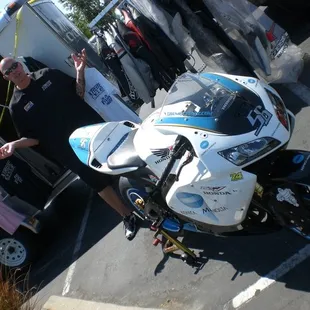 Frank working his magic on my bike, wouldn't trust anyone else to touch her!!