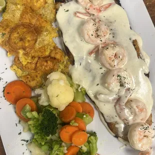 I went today and I got this delicious Fillete de pescado con camarones. Service was above and beyond from the waitress and owners. very nice ambiance and the chef is amazing. 10/10 recommend.