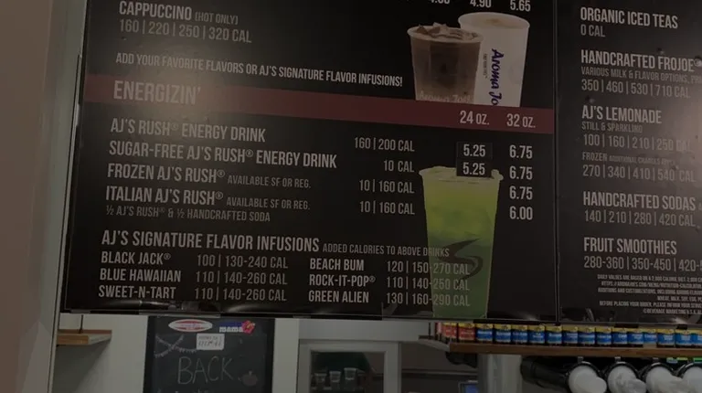 Honestly I love this Aroma Joes, my usual Black Jack always tastes the same, delicious. The service is great, the employees are really sweet and nice. I like going through the drive through because it's more convenient but when i do end up doing inside is very cozy. It's a nice place to hand out, study, or to do some work. 10 out of 10 would recommend going!