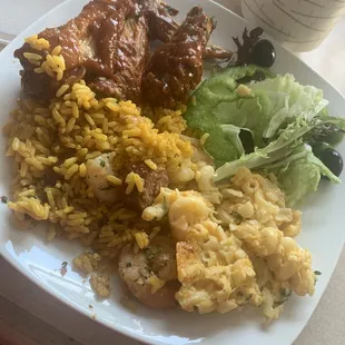 Mac&Cheese with the thunder wings! Also we got Moonlite rice and a house salad